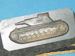 The tank destroyer award consists of three components. A metal plate with the image of a tank is the