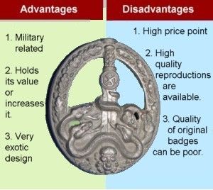 The adjacent table outlines some of the advantages and disadvantages of collecting the Anti Partisan badge.