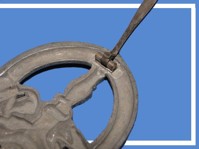 wire type, which is hinged at the top of the oval and is secured in the opposite end by a catch.