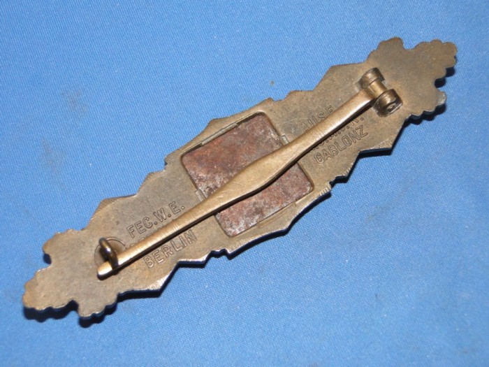 The Close Combat clasp was worn on the left breast of the tunic, above the ribbons. This sample is nicely marked with raised lettering.