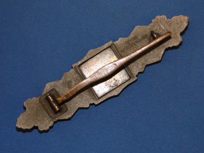 The Close Combat clasp was worn on the left breast of the tunic, above the ribbons. This sample is nicely marked with raised lettering.