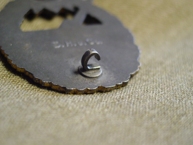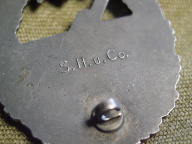 It reads S.H.u.Co., who was a well known manufacturer of Naval badges. Other samples may include