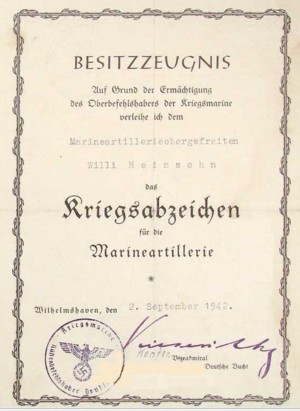 WWII GERMAN NAVY BADGE - COASTAL ARTILLERY -
