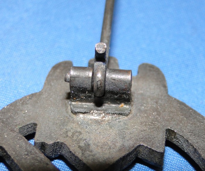 It was secured in place by passing the badge's pin through a series of loops, two or more, that