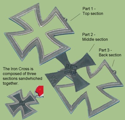 The Iron Cross is constructed of three pieces. Two identical frames in the shape of the cross with the