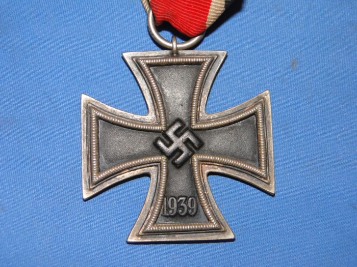 The Iron Cross has long been held as a symbol for bravery in combat, The Germans have been employing it as an award since the 1800's. The Iron Cross employed during WWII is very similar to that used in WWI. The major differences between the two periods are the dates displayed in the lower arm of the cross and the absecense of a Swastika in the WWI type.