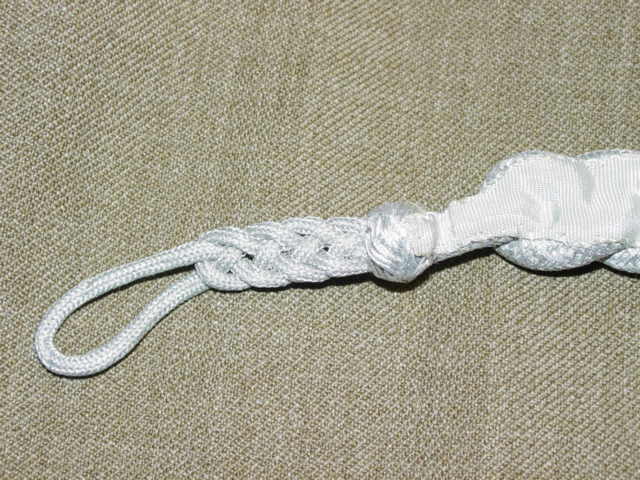 the right shoulder strap to the second button on the tunic. You can see an example of how the lanyard is worn
