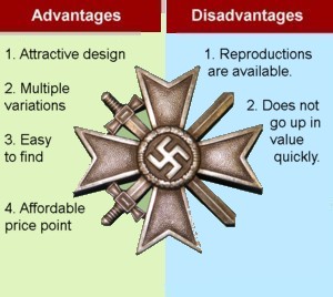 The adjacent table outlines some of the advantages and disadvantages of collecting the War Merit Crosses.