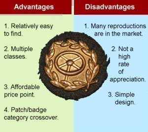 The adjacent table outlines some of the advantages and disadvantages of collecting the Spanish Civil War wound badge.