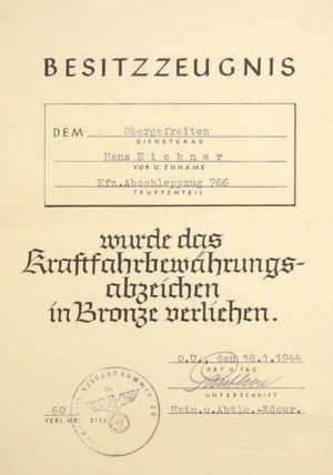 WWII GERMAN DRIVER PROFICIENCY AWARD - GOLD