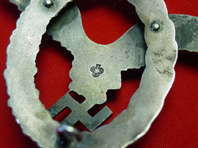 The pilot badges were often marked with the manufacturer's logo. The sample shown here has been stamped with a