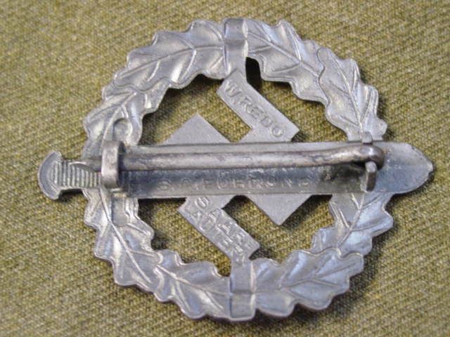This is a German WWII Bronze Sports badge. It later became known as the "SA Defense Badge". This badge was instituted on January 19th, 1939. It was produced in three different grades: