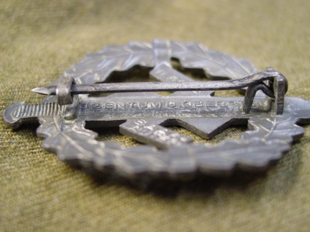 The badge consisted of a sword pointing up placed on top of a wreath. It was awarded after successfullt passing a