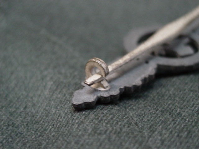 by its wings. The eagle is a separate piece from the rest of the badge and it is attached to the wreath