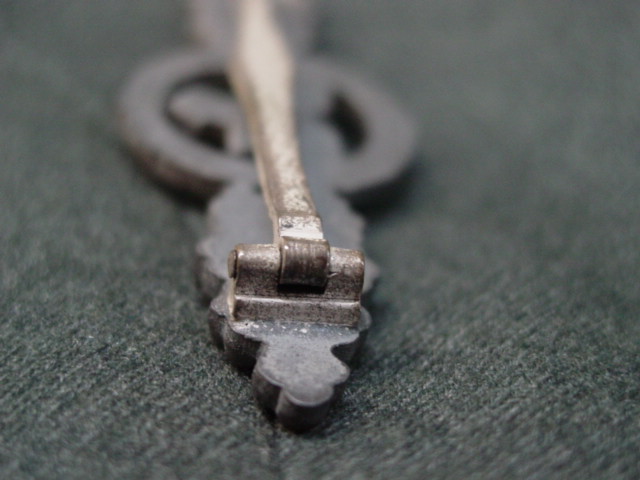 pin is thick and "Coke" bottle shape. The award is attached to the uniform by driving the pin
