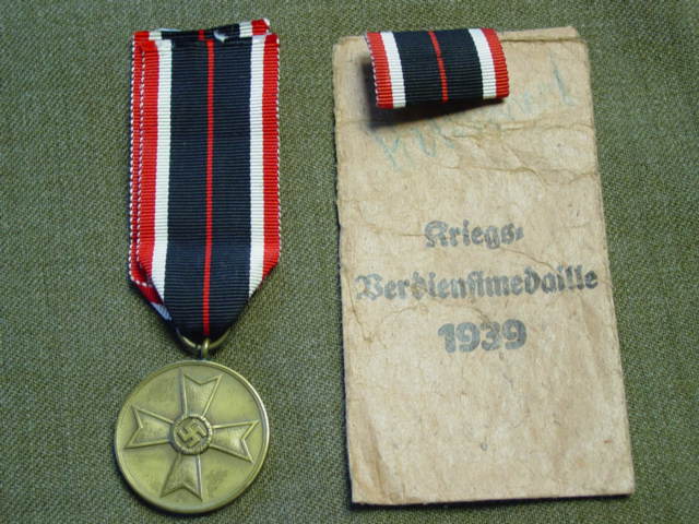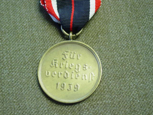 and the inscription "Fur Kriegs verdienh" (For War Merit 1939) on the reverse. The ribbon was