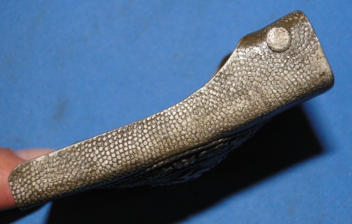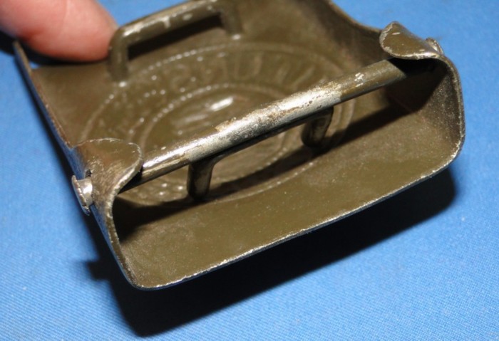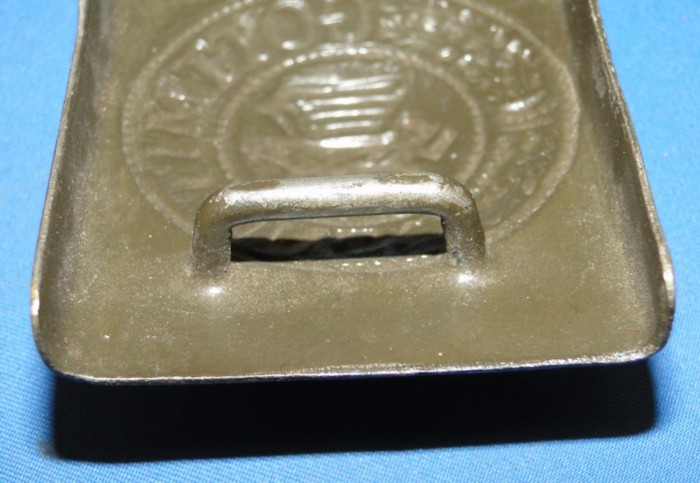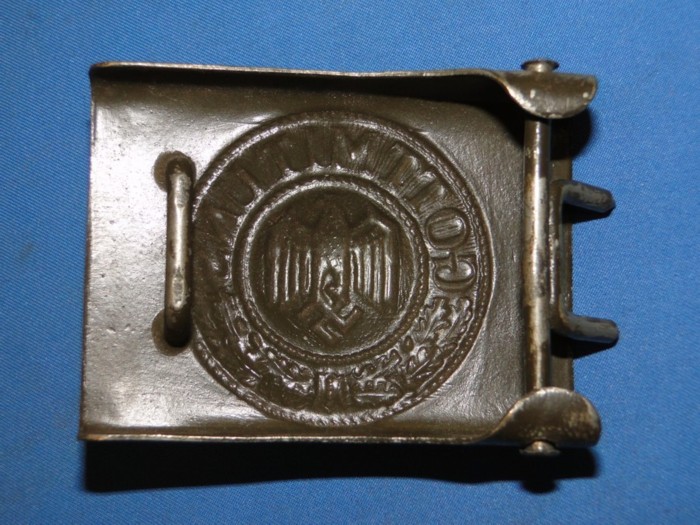 This is a WWII German belt buckle. Of steel construction. Smooth front with pebbling inside the oval.