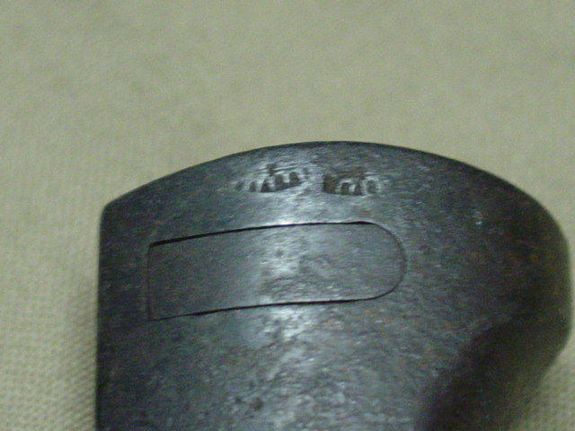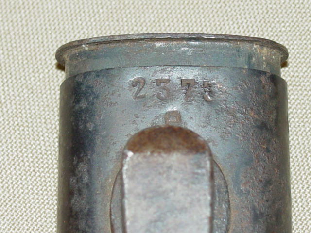 The design of the bayonet consisted of a bakelite handle (normally used in the early war bayonets). Some of the bayonets employed wooden handles. Two rivets were employed to secure them to the tang. The handles have a grooved pattern in the center area. This is use to improve the soldier's grip of the edge weapon.