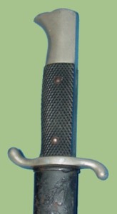 sidearm was worn with the regular uniform. Distinguished by its curved-up single arm cross guard. The blade came