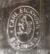 Knigt in armor standing up with arm back holding a sword. Initials above. City below. |