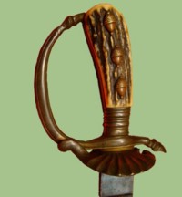 The hunting cutlasses came with a variety of handles. The early examples were manufactured of stag horn. The designs
