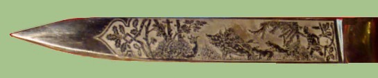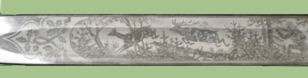 Many of the blade of the Hunting Cutlasses were richly engraved with imagery of forests, hunters and prey. In some