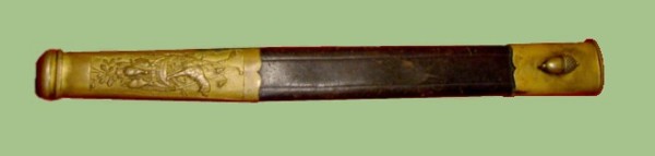 The scabbards consisted of a metal throat and finial. The mid portion was made of leather, usually brown or