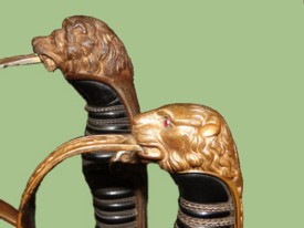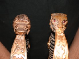 because of the shape of the pommel. The one on the right is known as the "Lion" head, which has red stone eyes, this is