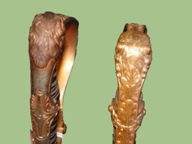 The following are two examples of the handles used by the German Army. The one on the left is known as the "Dove" head