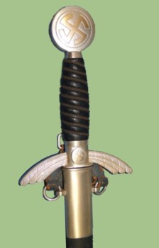 The German Air Force during WWII was known as the Luftwaffe. it was founded in 1935 and disbanded in 1946. The officers from the Luftwaffe were allowed to wear three basic types of edge weapons with their dress uniforms;