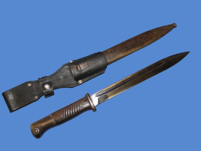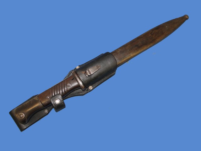 K98 Bayonet - The Karabiner 98 Kurz (often abbreviated Kar98k, K98, or K98k) was a bolt-action rifle adopted as the standard infantry rifle in 1935 by the German Wehrmacht, and was one of the final developments in the long line of Mauser military rifles.