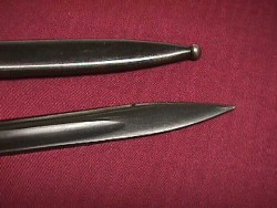 The tip of the scabbard ends in a small ball. The tip of the blade has a double edge construction. Like many other German