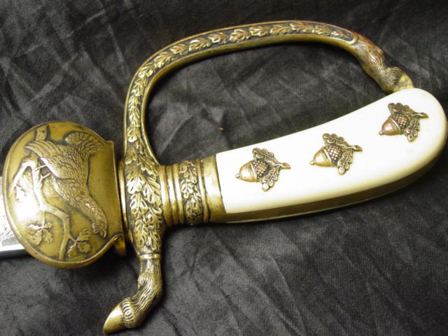 acorns evenly placed on one side. The pommel blends with the handle. The Crossguard has a neck