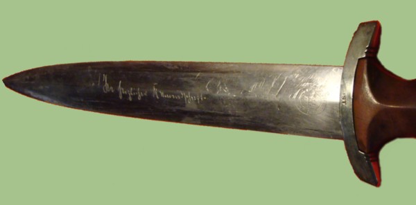 the regular SA dagger except that it had the inscription "In Herzlicher Freundschaft Ernst Rohm", which translated to
