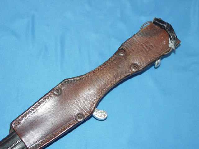 fitting is secured by a staple in the back section. A brown leather frog is present. The purpose