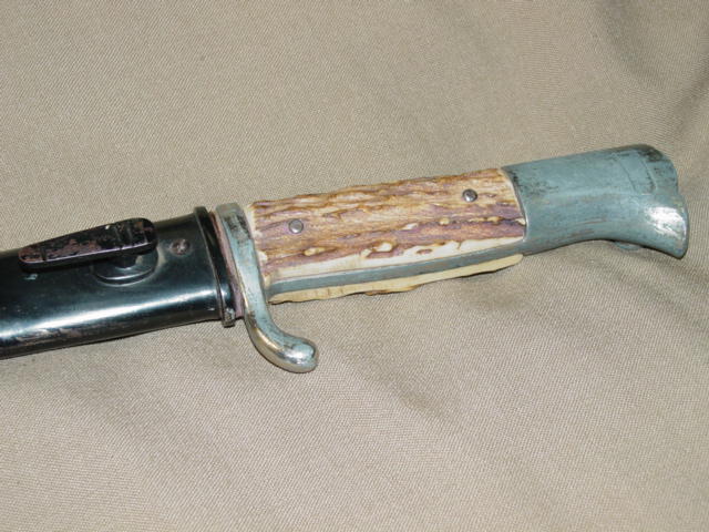 The item features here is a WWII German Police/Fire stag handle dress bayonet. This is an earlier model