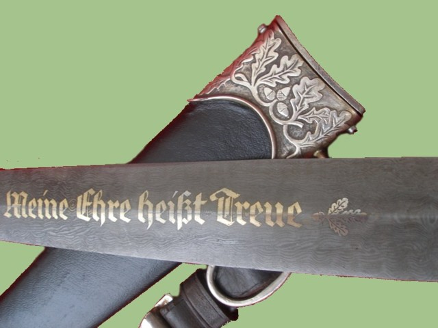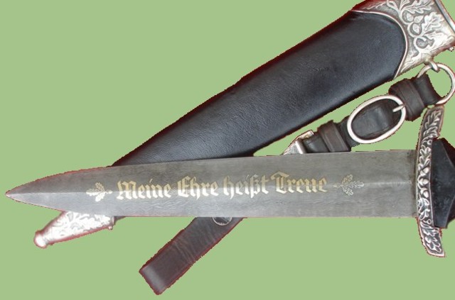 "my honour is loyalty". Something unique to the honor dagger was the addition of a leaf at the