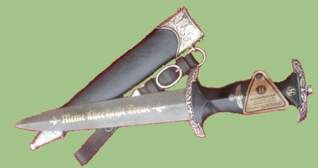 The edge weapon featured here is the SS honor dagger.