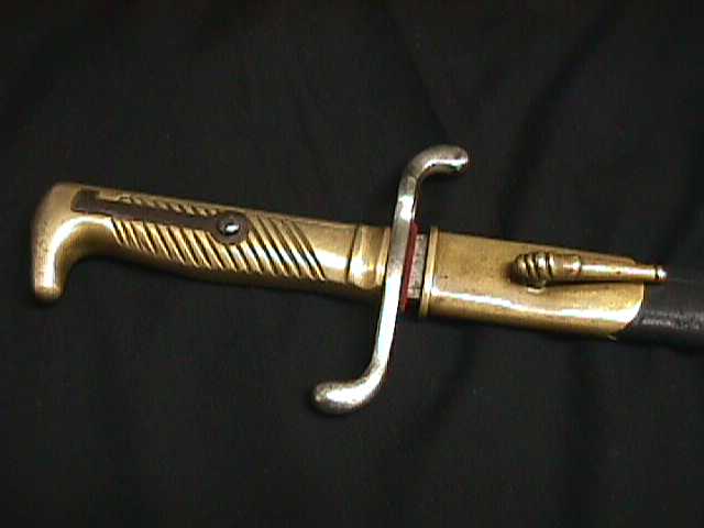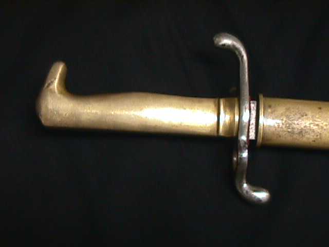 The construction of the Hirschfanger bayonet consists of a brass handle. One side has multiple