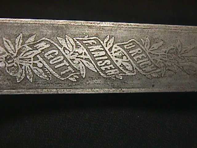 This is a fine example of a WWI HIRSCHFANGER presentation bayonet. The blade is finely engraved on both sides and at the top.