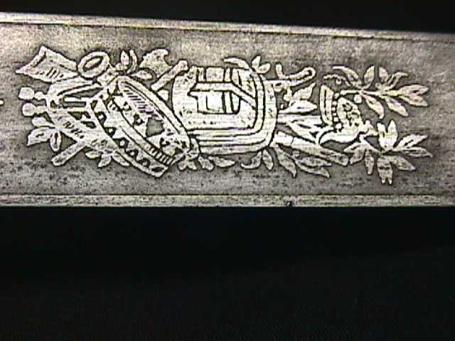 swords, crowns. musical instruments, leafing and more. One section has the following words