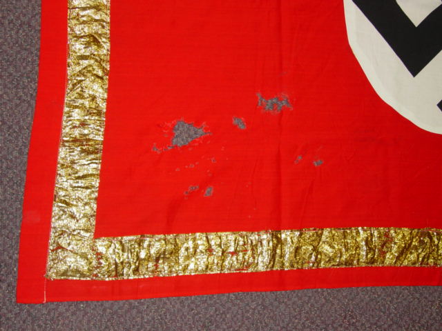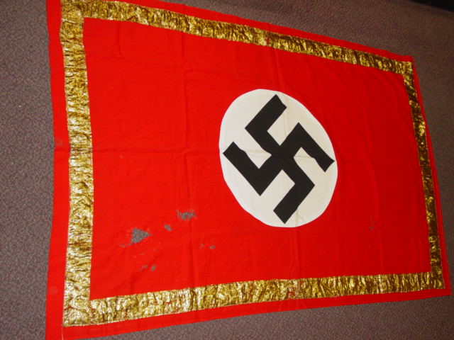 The item featured here is a German WWII podium flag. It was used at NSDAP events. Of