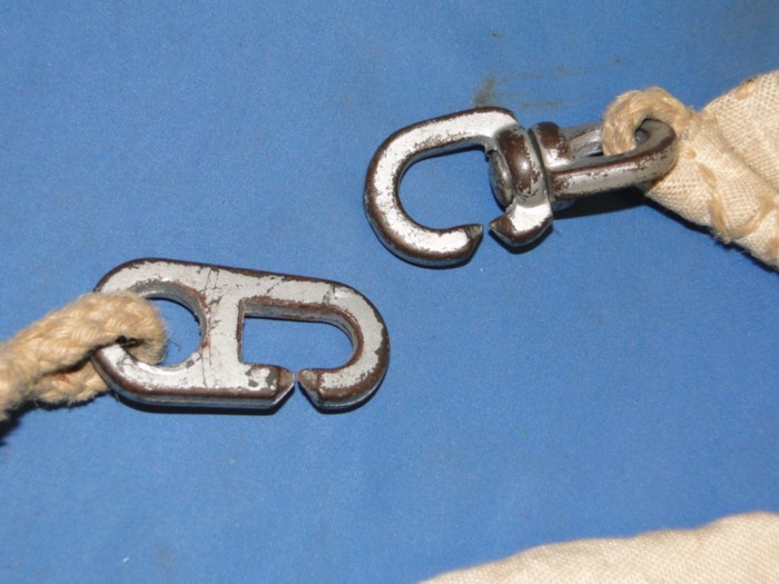 allowed it to be secured to the boat. The end with the rope has a heavy duty white cotton enforcement with