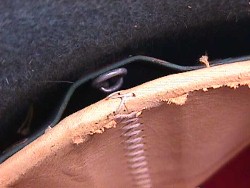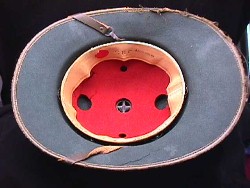 The helmets were built with a leather sweat band. Also typical of the helmets is the red material on the inside top.