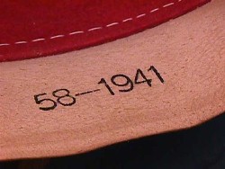 The inside of the sweatband is branded with the date and size of the helmet. This sample is dated