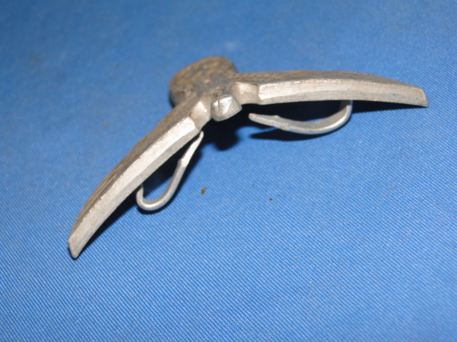 eagle. The two prongs are driven through the material of the hat to secure the eagle in place.