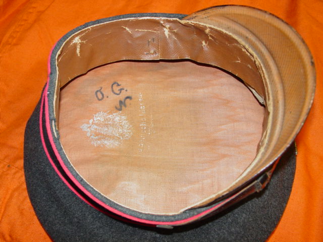 The inside of the hat has a white stamped eagle (imoerial type) with some writting below it.