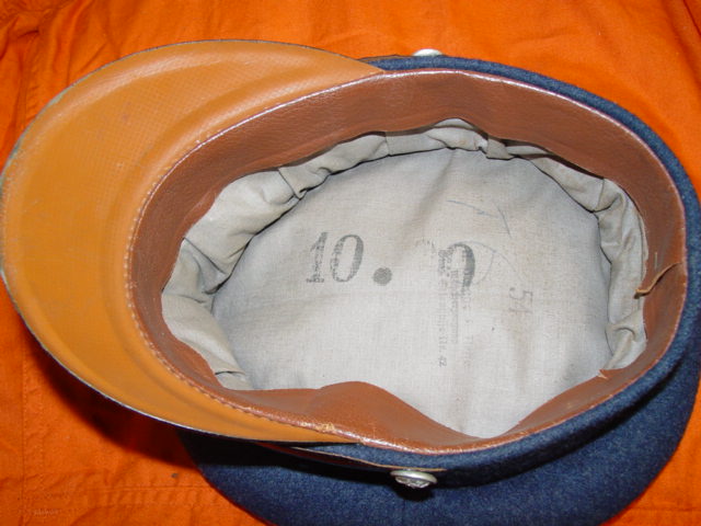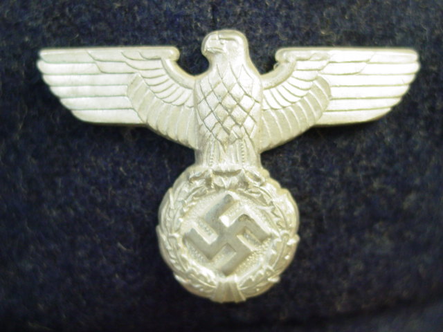 This is a German WWII hat. As issued to fire department personnel. Of dark blue wool construction.