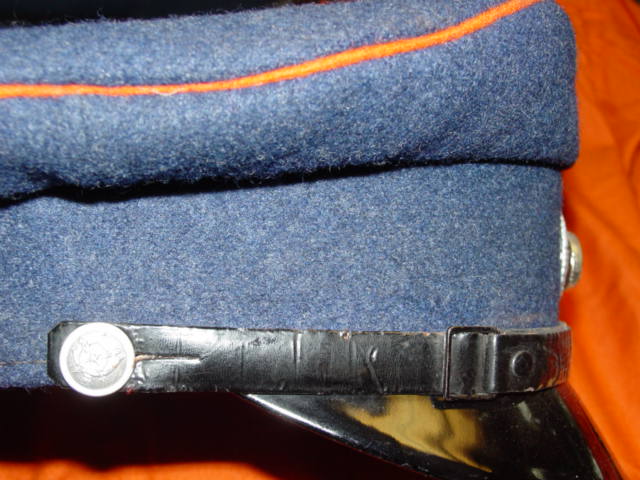 to be adjusted. The chin strap is secured via the use of silvers buttons. One on each end.