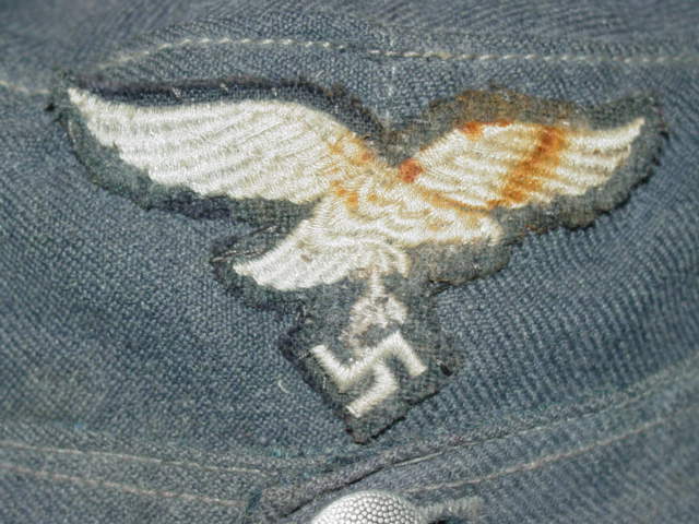 A cloth white Luftwaffe eagle is sewn to the upper front section. The eagle has its